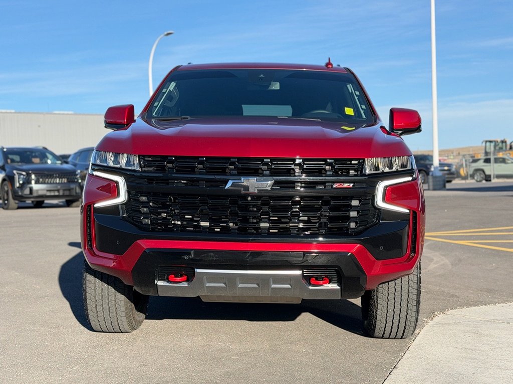 Max Trailering Package: Extra Capacity Cooling System. Advanced Trailering Package: Smart Trailer Integration Indicator; Integrated Trailer Brake Controller; Hitch Guidance with Hitch View. Driver Alert Package: Rear Cross Traffic Alert; Lane Change Alert with Side Blind Zone Alert. Luxury Package: HD Surround Vision; Heated 2nd Row Outboard Seats; 2nd Row Power Release 60/40 Split-Folding Bench Seat; Memory Settings; Power Tilt and Telescopic Steering Column; Rear Pedestrian Alert; Heated Steering Wheel; 3rd Row 60/40 Power-Folding Split-Bench Seat; Outside Heated Power-Adjustable Mirrors. Preferred Equipment Group 2Z7: Bright Front and Rear Door Sill Plates; Leather-Appointed Seat Trim; Remote Start; Hill Descent Control; 20" X 9" Machined Aluminum Wheels; Floor Console with Storage Area; Black Tubular Assist Steps; LED Daytime Running Lamps; Driver and Front Outboard Passenger Airbags; Memory Settings For Driver; Wireless Charging; Front High-Back Reclining Bucket Seats; Universal Home Remote; Color-Keyed Carpeting Floor Covering; Front Skid Plate; Front High-Approach Angle Fascia; Hands-Free Rear Power Programmable Liftgate; Chevrolet Infotainment 3 Premium System Radio; Bose 9-Speaker Stereo Audio System Feature; 2-Speed Active Electronic Autotrac Transfer Case; 1st and 2nd Row Color-Keyed Carpeted Floor Mats; Enhanced Driver Information Center; Red Horizontal-Mounted Recovery Hooks; SiriusXM Radio with 360L; Wrapped Steering Wheel; 275/60R20SL AT BW Tires; Infotainment Display; Auto-Dimming Inside Rearview Mirror. Dual-Pane Power Panoramic Sunroof. Radiant Red Tintcoat. Power Release 2nd Row Bucket Seats. 1st. 2nd & 3rd Rows All-Weather Floor Liners (LPO). **Equipment listed is based on original vehicle build and subject to change. Please confirm the accuracy of the included equipment by calling the dealer prior to purchase.**